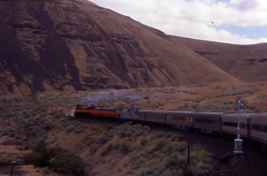 I had always wanted to ride the rails through the Deschutes River Canyon to Bend, Oregon. Whenever I was on the Coast Starlight, I hoped that something would happen on the regular route so that the train would run this way as it did when I rode the Inside Gateway down the Highline from Klamath Falls to Keddie then down the Feather River Canyon in 2003.