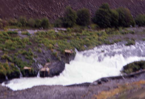 Sherar's Falls has Indian fishing platforms just above the running waters and only members of the Confederate Tribes of Warm Springs Reservation are allowed to fish here.