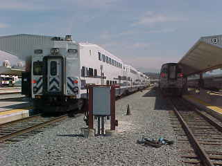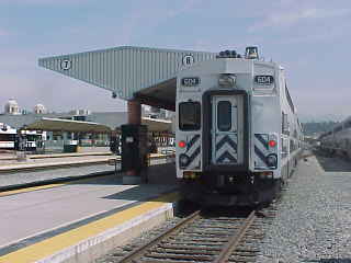 Metrolink 655Once aboard I found the conductor and told him about the ticketing problem. Upstairs in the cab car, I was surprised to find Steve Grande of Trainweb.com and Trainparty.com fame who took Amtrak south last night to Oceanside then boarded this train there. We all had a nice conversation as the train rolled north towards Los Angeles and a Los Angeles County Sheriff came by to check tickets and was in a very good mood. Steve detrained at Fullerton and we arrived at Los Angeles Union Station early.