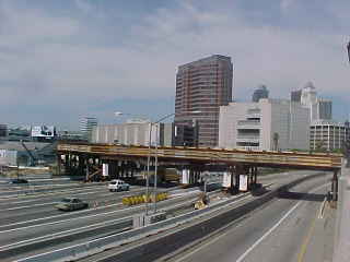 From the end of the platforms, the Gold Line extension construction could be seen as work on the bridge across US 101 continued.