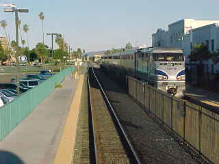 We arrived at Oceanside just as Pacific Surfliner 565 was departing with the new Oceanside parking structure at the right.