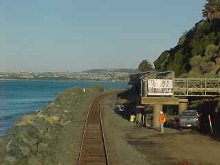The location of the new bridge that replaced the old one that had a 50 miles-per-hour slow order. We arrived at Solana Beach and went across to the west platform to wait for Pacific Surfliner 567 to return me to Santa Ana on time.