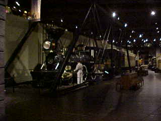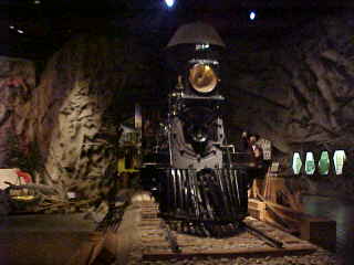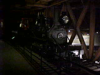 The narrow gauge freight train lurking on a trestle on the second floor of the museum led by Nevada Central 2-6-0 6, exx. Nevada Short Line 1, exx. Utah Northern 17, exxx. Utah Northern 13, nee Nevada Short Line 2-6-0 1 built by Baldwin in 1879. It was gifted by the Pacific Coast Chapter of the Railway and Locomotive Historical Society in 1969 and restored by the musuem to its 1920 appearance.