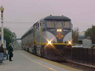 San Joaquin 701 11/4/2006This train arrived on time with F59PHI 2013 leading coaches 6465 "Moonstone Beach" (Pacific Surfliner seats) and 8014 "Colorado River", café 8808 "Cochella Valley" and cab car 6963 "Point Reyes". I settled into my seat in the 6465 for my trip to my state capital, Sacramento. We arrived at Fresno early so I went for a walk to loosen up my legs. Later at Gregg, we took the siding for our morning counterpart San Joaquin 702 on its way to Bakersfield then stopped in Madera and I bought an early lunch of a hot dog and pretzel before reading the Fresno Bee. My train stopped in Merced, then at Atwater, held the mainline for San Joaquin 712 before pausing at Turlock/Denair then did the Modesto stop before arriving at the ACE station in Stockton, where passengers detrained in the street on the former Southern Pacific line. We went to Lodi then onto Acampo, where we slowed awaiting a green signal after a southbound Union Pacific freight.
