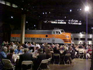 The guests enjoying dinner, which was a selection of beef and chicken. After dinner, Catherine Taylor, District Superintendent of the California State Railroad Museum, spoke about the museum and its future then she opened the floor for questions and I asked if there was going to be another Railfair? She said most likely when the Museum of Railroad Science and Industry opens someday in the future. It was then time for dessert and one tired Chris returned to the Vagabond Inn for the night.