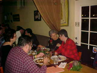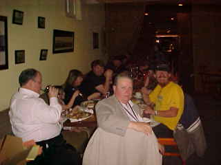 Winston and I walked across the parking lot to the Rail Restaurant. A group was already outside waiting for the it to open, which it did after 5:00 PM. Since some people were leaving on the Southwest Chief tonight, they were served first. It was ten years ago on this date, December 6th, 1996, that Trainweb.com received their domain name and the rest is history. Congratulations to Trainweb.com, not only for ten years, but for also hosting my website that everyone enjoys. Remember, one can obtain a free website at Trainweb.org as long as it is rail-related. Below, some scenes for this evening's party.