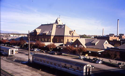 After we departed Gallup, we passed the red mesas of New Mexico. The Rolling Stones' "Voodoo Lounge" was the next musical selection of the morning then at Grants, the music was switched to Jethro Tull's "A Passion Play", followed by "Extra Thick as a Brick", the other Tull one-track album. That took me all the way to Albuquerque, at which we arrived ten minutes late and I detrained, first running into Conductor John Kennedy, then I saw Chris Parker. His flights via Phoenix had worked out and he took a city bus to the Alvarado Transportation Center next to the Amtrak station for just a dollar. Once we boarded, I showed Chris where to sit and we both returned to the 42 degree outdoor air.