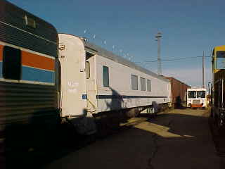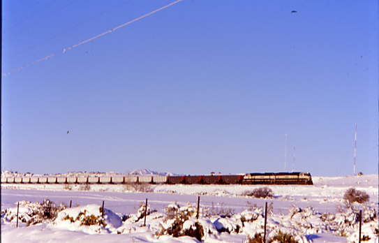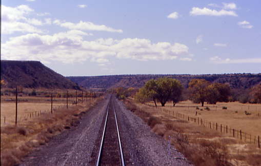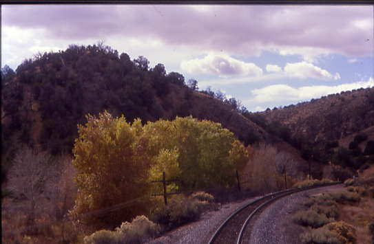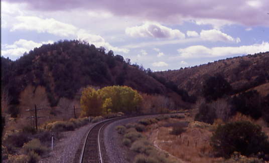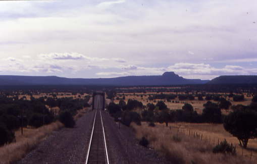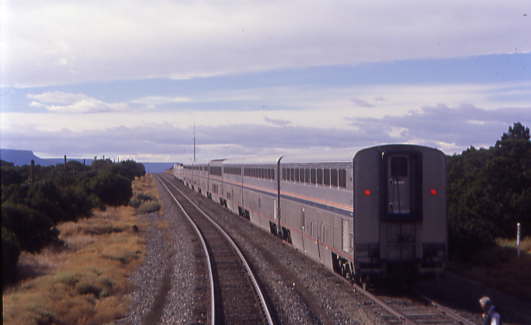 10/26/2006 I awoke east of Flagstaff in the pre-dawn hour to a very clear morning and sat at a table in the lounge car waiting for the dining car to open as the Southwest Chief sped toward Winslow. When it opened, I was seated at a table with Otto, going to Albuquerque for the winter from Lakehurst, New Jersey, and Rob from Flagstaff, also going to the same destination. I enjoyed French Toast and sausage along with some interesting conversation then back at my seat, Rush's "Vapor Trails" was my next musical selection. West of Gallup, we stopped so I switched to Jeff Beck's "You Had It Coming!" while we waited for a BNSF freight train before we could cross over to the station track.