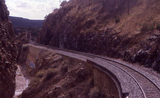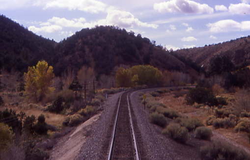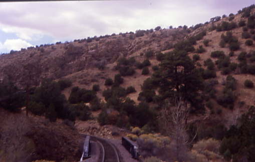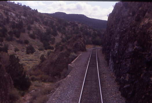 After that I went to the lounge car to visit with Chris and a few others passengers then returned to my seat to get a dinner reservation, but could not get one because all the early ones had been given out. Since we were getting off at Trinidad, we would not be able to eat. In 956,000 rail miles, I have never been unable to eat in a dining car on a train. Sam, the Dining Car steward, later found me and gave Chris and I a 5:30 PM dinner reservation. After we traversed the "S" curves, I went to the back door for more semaphore action.