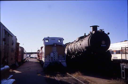 Desiring a larger view of the museum area and noticing the Union Avenue bridge to the east, I walked around some buildings and up to the bridge. I saw Chris speaking to someone so hurried back and saw Chris in the cab of Colorado and Wyoming GP7 104. Inside, I met Ron of the Pueblo Railway Museum and we chatted about the museum, their plans for a new home and more track for their excursion run. He had tried to start 104 earlier this morning so we could have a ride but the locomotive would not start because of the cold temperatures. We thanked him for having us and left this very interesting railroad museum.