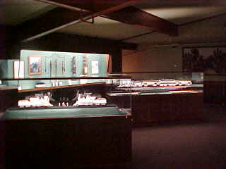 On the track are a handcar and small flat car. We walked up the stairs to the lobby of the museum and I gave the lady behind the counter one of my business cards and told her I was here to write a story. She said there would be no more tours and that I had only twenty minutes left until closing. I responded that I could be quick and she let me in. I started looking around, wishing I had more time but, like that old saying "You only live once, so make the most of it".