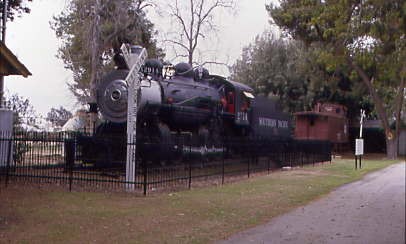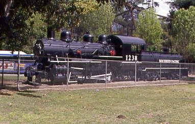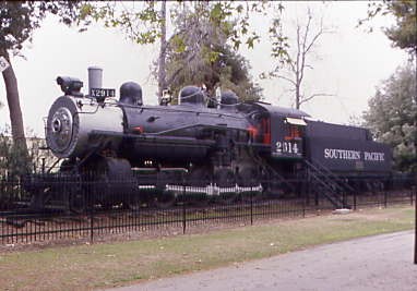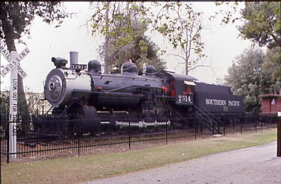 Southern Pacific 4-8-0 2914, nee Southern Pacific 2024, built by Schenectady Locomotive Works in 1898. The re-numbering occurred when it was converted from coal to oil. It worked on the San Joaquin Division until it was retired in 1955, hauling freight as well as working as a helper over the Tehachapi Mountains, served on the McKittrick, Sunset and Oil City Branches of the SP and as a switcher in the SP's East Bakersfield yard. The Southern Pacific donated 2914 to Kern County in 1955.