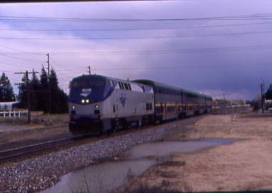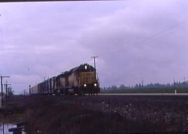 Amtrak San Joaquin 713 arrived at Modesto. Ken Ruben was aboard and we tried to get him off by having the conductor announce his name and that his party was meeting him here to take him to Stockton. However, he did not show and later we learned Ken had slept through the announcement. We drove through Riverbank and a few miles north we saw a headlight.