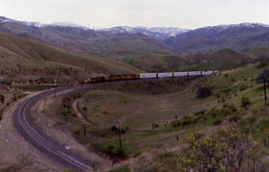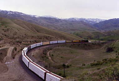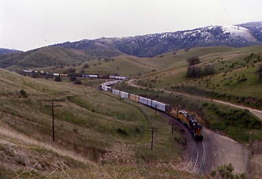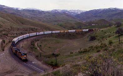 Union Pacific 5742 East climbed up and through Tunnel 2. We decided to go to the loop but spotted a westbound descending through Bealville so returned to Tunnel 2.