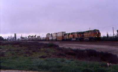 When made our way east towards the Tehachapi Mountains then at Kern Junction, we were stopped by a westbound BNSF freight. On the move again after passing the Union Pacific Yard, we saw a headlight out of the east.