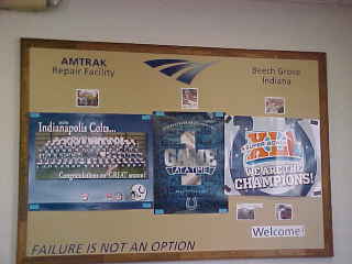 On the bulletin board was this poster that reads "Failure is not an option". It would be evident throughout our tour that the shop crew takes that sentence to heart. A few minutes later, Superintendent Lew Woods emerged from his office and we were ready to start the tour of the former New York Central shop which employs 550 people, which is well-known for the excellent workmanship. The Beech Grove Shops sit on 108 acres and there is 700,000 square feet under the rooves of this complex.