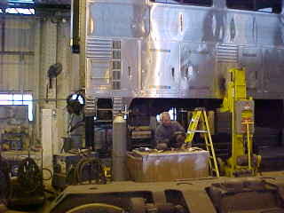 Cars are jacked up so work can be performed under the car body here at Spot 6 and the protection screens that protect the head end power cables beneath the car were visible.
