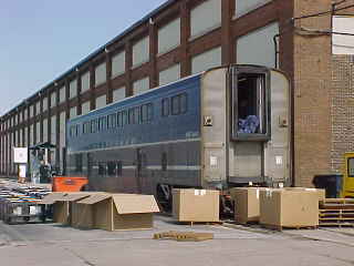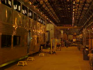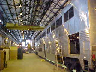 This Superliner car was having its air conditioning unit replaced. The workers are known as the "Wizards of Beech Grove" and we were seeing that this is absolutely true.
