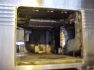 Inside the engine compartment where the engine should be. The inside of engines are painted white so crews can easily spot oil leaks.