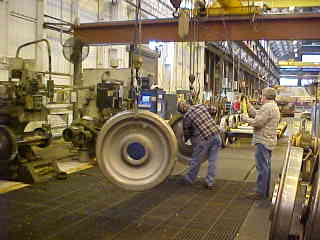 Locomotive truck repair. Beech Grove Shops is an Association of American Railroads-certified shop.