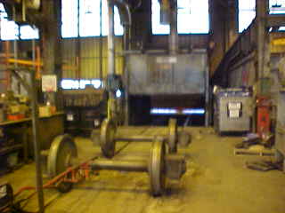 This is the area of the Wheel Shop which has the wheelpPress that is done by using 150 tons of force to press wheels onto their axles.