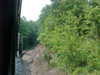 I chose a seat in coach 1003 in order to be closer to the sound of that Alco S-2 engine. I fell in love with the sounds of Alco engines on the Santa Fe and Southern Pacific when I was growing up. This trip would be a thrill and a chance to relive memories of a time I thought was lost. First, a safety announcement was made then with the sound of 105's steam whistle, we departed Stearns at 2:35 PM.