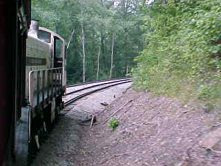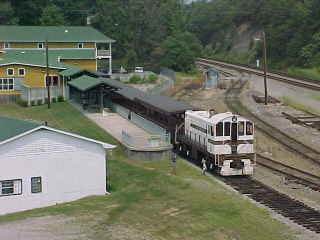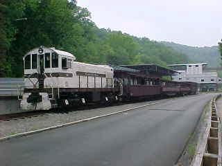 Union Railroad 0-6-0 14 built by American Locomotive Company in 1944. In 1955, it was sold to Morehead & North Fork Railroad Company 14 at Clearfield, Kentucky then later sold to dealer George Silcott and in 1969, became the property of Cumberland Falls Scenic Railway. Later the engine was sold to the Tombstone Junction Amusement Park and renumbered 77, where she operated until 1989. The amusement park then burned down and 77 was sold to the Kentucky and Tennessee to be restored and operate on the Big South Fork Scenic Railway.