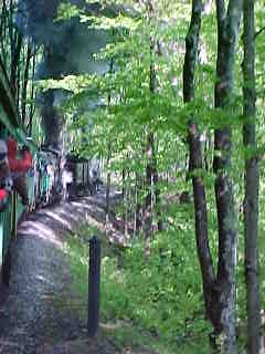 We all detrained and climbed up the side of the hill. The passenger train cleared and we all waited for the log train to arrive which had followed us.