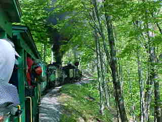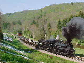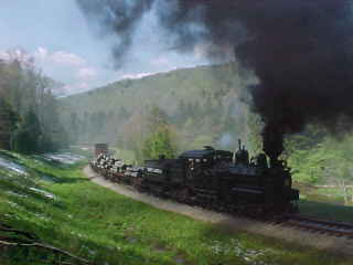 Starting downgrade leaving Spruce where we pulled north along the Shaver Fork to Beaver Creek to detrain for our next photo runby.