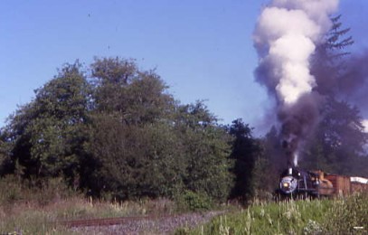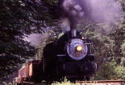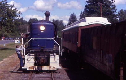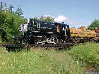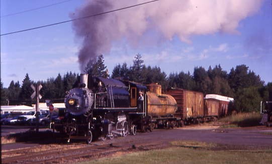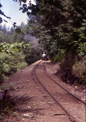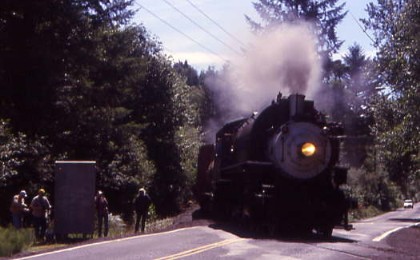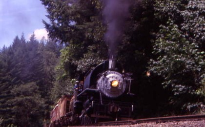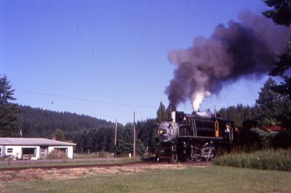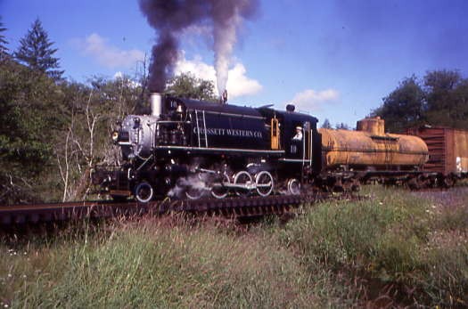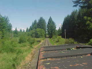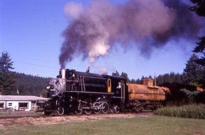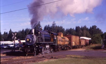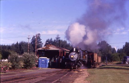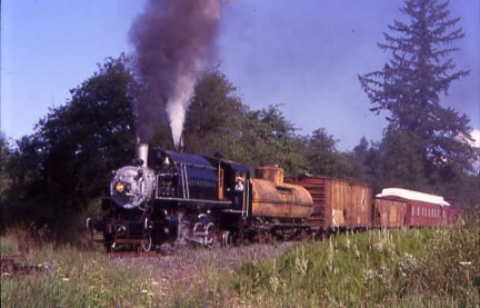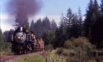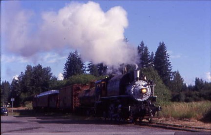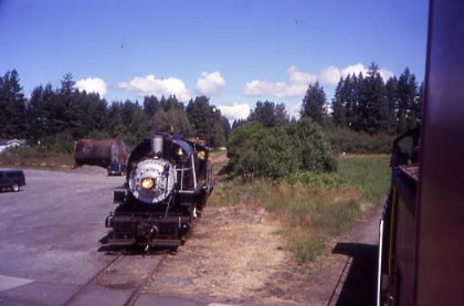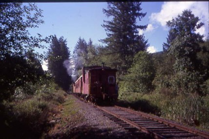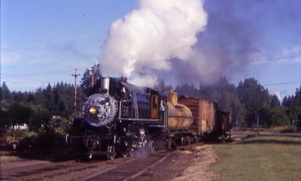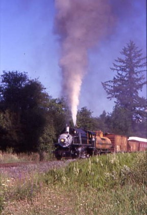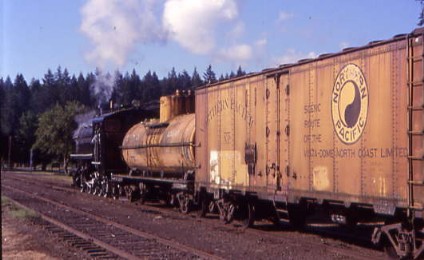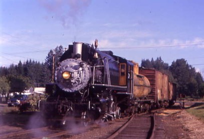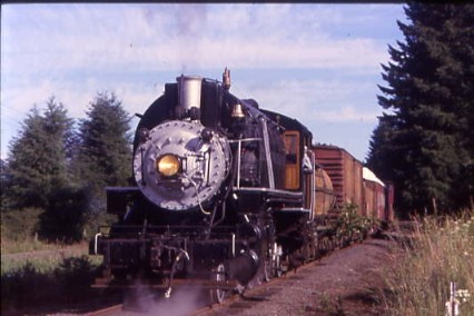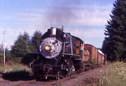 Even though the Northern Pacific sold the line, it was not the end of NP involvement in the area. In the late 1950's, NP was running one log train a day from Kelso to Yacolt. The train would leave Kelso at 7:00 am, pick up empty cars at Longview, stop at Battle Ground where the crew would eat lunch, and arrive at Yacolt at 12:3 0pm. On the return trip, the train would drop off the log cars at Longview and be back in Kelso at 7:45 pm. When the mill was closed in 1979, the entire line was put up for sale.