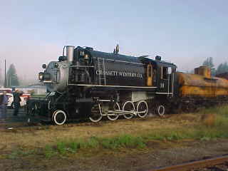 Chelatchie Prairie Photo Freight 6/30/2007Our train taking water before starting our day of fun. The consist of our photo freight was Crossett Western 2-8-2T 10, water car 577, ex Southern Georgia later Longview, Portland and Northern Northern Pacific box car 207778, BYCX 555 hopper car, BYCX twelve-berth sleeper 60 "Glen Shan" and BYCX caboose 10559.