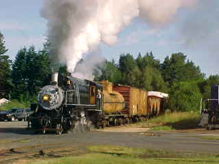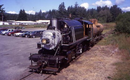 Battle Ground, Yacolt and Chelatchie Railroad 2-8-2T 10, ex. Peter Replinger 1974, exx. donation to City of Fortuna, California, exxx. Georgia Pacific Corporation 16 1956, exxxx. Hammond Lumber Company 16, nee Crossett Western Company 10 built by American Locomotive Company in 1929.