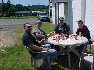 Photo runby nine looking from below. We all then reboarded and the train took us back to Yacolt for lunch. The Red Fir Restaurant was a bar where the under-21 crowd could not eat. Chris and I decided to join Anton and our new friends for an excellent pork and chicken lunch outside on a beautiful day.