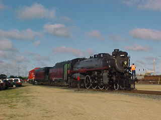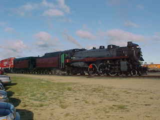 I arrived as the Canadian Pacific Railway crew was cleaning and polishing the locomotive and checking over all parts on Canadian Pacific 4-6-4 2816.