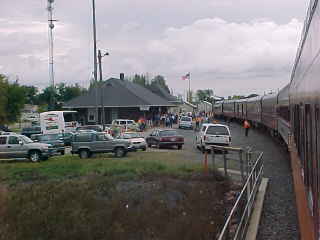 Canadian Pacific 2816 steamed through Buffalo with the Soo Line station, built in 1954, still standing. We ran west into Maple Lake then steamed through Annadale and onto South Haven with its 8,477 foot siding. At a red signal, we stopped for a grease stop of the locomotive and soon learned that ahead was a broken rail, later learning it could be moved with one's foot. An estimated time of 1:00 PM was given to have the problem fixed, so there we sat.