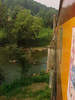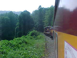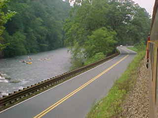 Climbing away from the river as we made our way towards the Horseshoe Curve. The road crossing at the middle had to be flagged after the crossing signals were shorted out by last night's electrical storms.