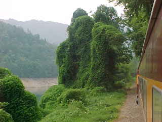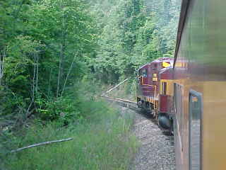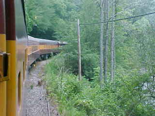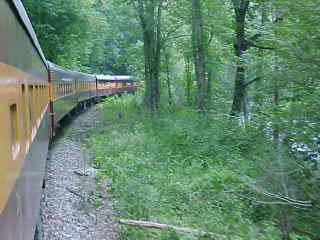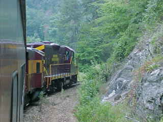 The train came around the sharp 14.2 degree curve at MP 78, where the Nantahala River makes a 125 degree turn.