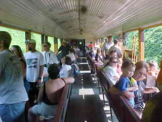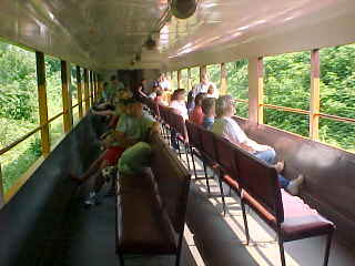 Interior of Great Smoky Mountains open air car 37 "Nantahala", ex. Maryland Midland 83, exx. Penn Central 2182, exxx. Erie Lackawanna 1311, nee Delaware, Lackawanna & Western 311, built by Pullman in 1949.