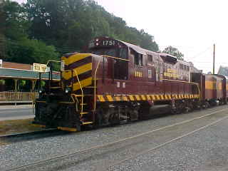 Great Smoky Mountain Railroad GP9 1751, ex. San Joaquin Valley Railroad 1751, exx. Arizona Eastern 1751, exxx. Southern Pacific 3312, exxxxx. Southern Pacific 3432 nee Texas and New Orleans 420 built by Electro-Motive Division in 1955.