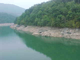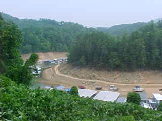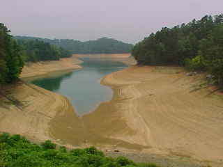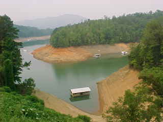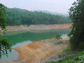 The first view of Fontana Lake which was down by 50 feet because of the drought.