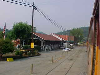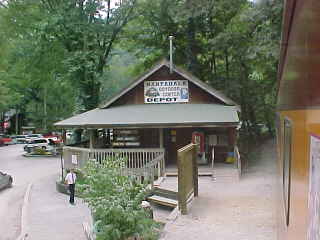 I next met Connie Southard from the railroad who gave me our tickets for this morning's train and said our tickets for our one-way trip to Dillsboro would arrive on that train this afternoon. She also gave Chris and I a hobo pack with some nice souvenirs wrapped inside then gave me "Passage Through Time," the milepost guidebook to this railroad.