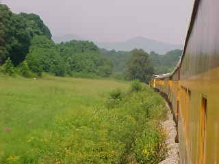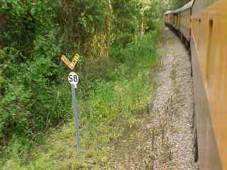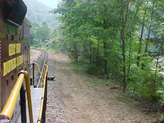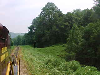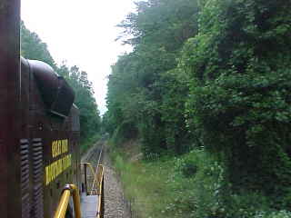 Looking forward. On right hand curves, the brakeman and I were our engineer's eyes.