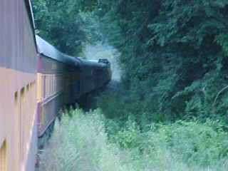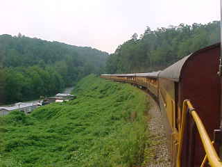 The road in the trees. We drove into Tennessee, passing through two tunnels and a 360 degree loop on the highway, as well as Pigeon Forge, before reaching Interstate 40, which we took west through Knoxville. We exited at Exit 356, stopped for snacks and drinks before continuing north on Tennessee Highway 58 to our next train ride of this trip.