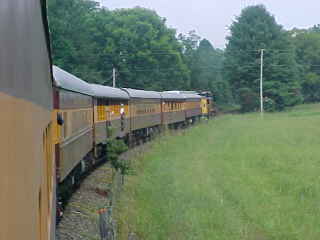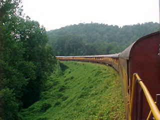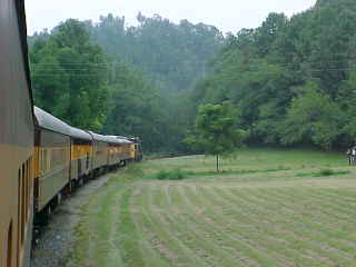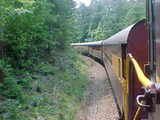 Around the horseshoe curve with another stop to flag the grade crossing.