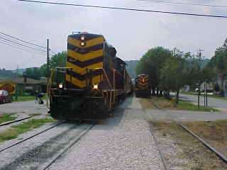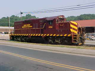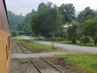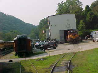 Passing the Great Smoky Mountains Railroad shop.
