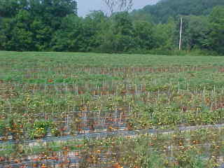 A large farm with a tomato crop ready to be harvested.