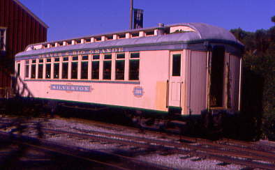 Denver and Rio Grande coach "Silverton" built by the railroad in 1887, was on display. We then waited for the train to come around the loop again.