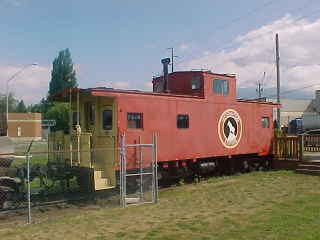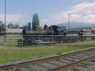 The morning after that excellent ride on the Spirit of Washington Dinner Train, I drove north through Seattle on Interstate 5 to Lynnwood and soon found Bob's house where he and Elizabeth were waiting for me. Bob showed me around his house and the various railroad items he had on display. Most impressive! Bob ran an errand while Elizabeth and I caught up then soon the three of us were ready to start the trip to the Lake Whatcom Railway. We drove north on Interstate 5 to Burlington, where we turned right on State Route 20. As we passed through Sedro Woolley, I asked Bob to stop the car at a railroad display.