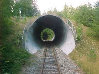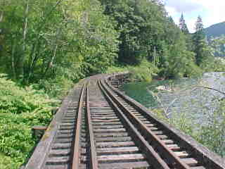 The curved trestle that swimmers also use as a diving platform. After crossing the trestle, we continued on to the end of track.