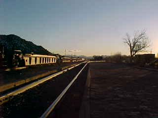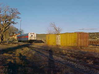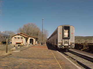 I visited Coldstone Creamery and talked to Gingi on the platform before returning to the warmth of the train. It was frigid with that strong north wind blowing. We departed on time with U2's "Pop" on my CD player then arrived at Lamy on time and I detrained.